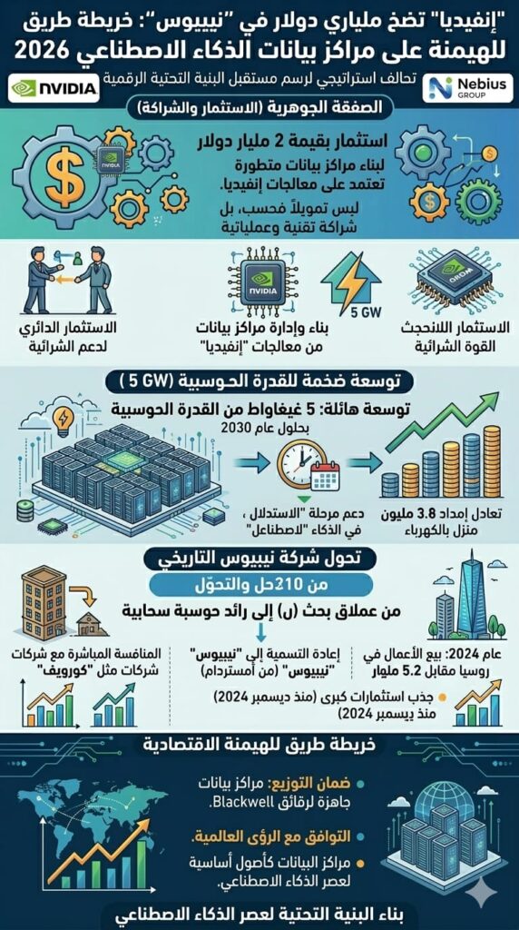 ضمان قنوات التوزيع: عبر الاستثمار في “نيبيوس”، تضمن “إنفيديا” وجود مراكز بيانات جاهزة لاستيعاب أحدث رقائقها (مثل معالجات Blackwell وما بعدها).