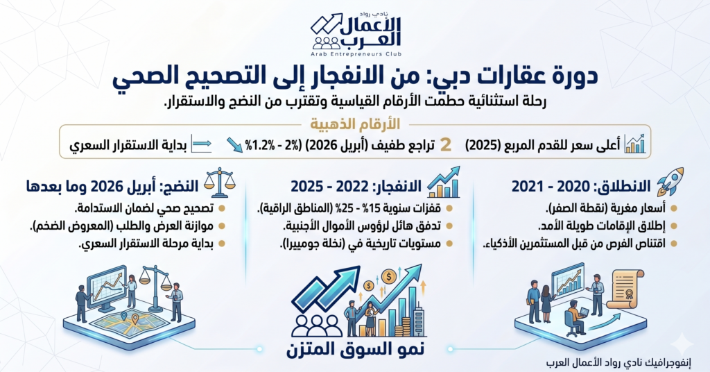 - 2026 (مرحلة النضج): بدأ المعروض الضخم من الوحدات التي أُطلقت سابقاً بدخول السوق، مما أدى إلى موازنة كفتي العرض والطلب وتسجيل أول تراجع سعري منذ 6 سنوات.
